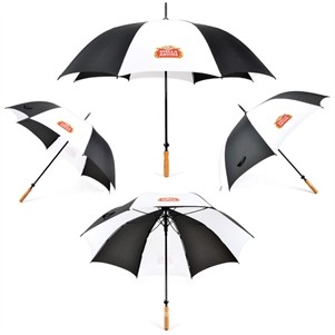 This top-selling golf umbrella features a large vented and windproof 62″ canopy arc, plus all-fiberglass construction (shaft, ribs, tips, and ferrule) and a color-coordinated soft grip handle. Manual open. Includes a matching fabric case with shoulder strap. Absolute minimum order is 12 golf umbrellas, but please inquire with our golf tournament team for pricing and logo options. A very popular golf gift for your pro shop, next tournament or outing!